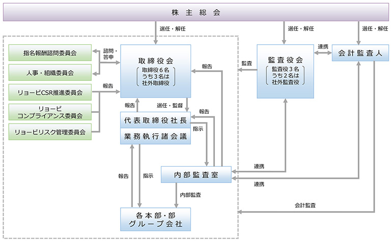 リョービ株式会社は、監査役設置会社形態を採用しています。