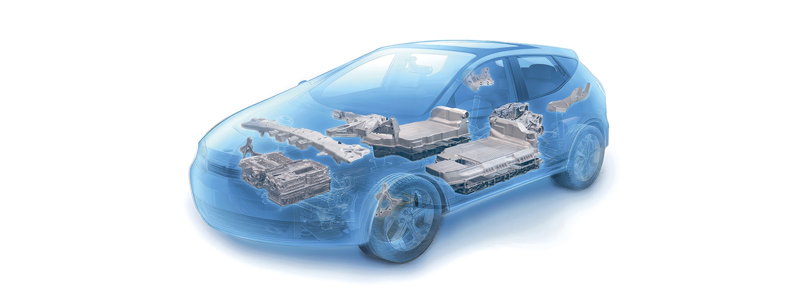 バッテリーなど電装部品の重量が航続距離に影響する電気自動車(BEV)を筆頭に、電動車では更なる軽量化や生産性の向上が求められています。こうした中、海外では、大型の車体部品を超大型ダイカストマシンで一体成形する「ギガキャスト」と呼ばれる技術が広がっています