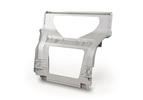 ダイカストとは、精密な金型に溶かしたアルミなど非鉄金属の合金を高速・高圧で充填し、瞬時に成形する技術や製品のことをいいます。軽量で高強度、高い寸法精度で複雑な形状を成形。加工量が少なく、高品質で大量生産ができることから、自動車に数多く採用されています。リョービは、独自の一貫体制で開発リードタイムの短縮や高度な形状・機能を実現し、またワンストップの品質保証体制を構築しています。