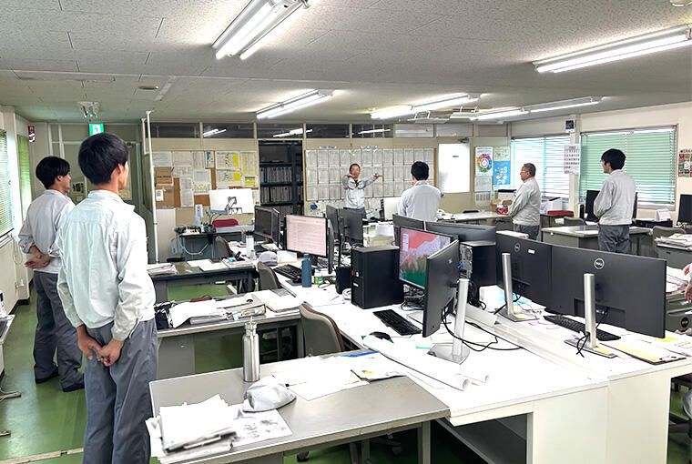 - 朝礼後、業務の進捗状況や1日の予定を確認します。