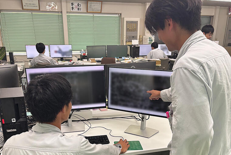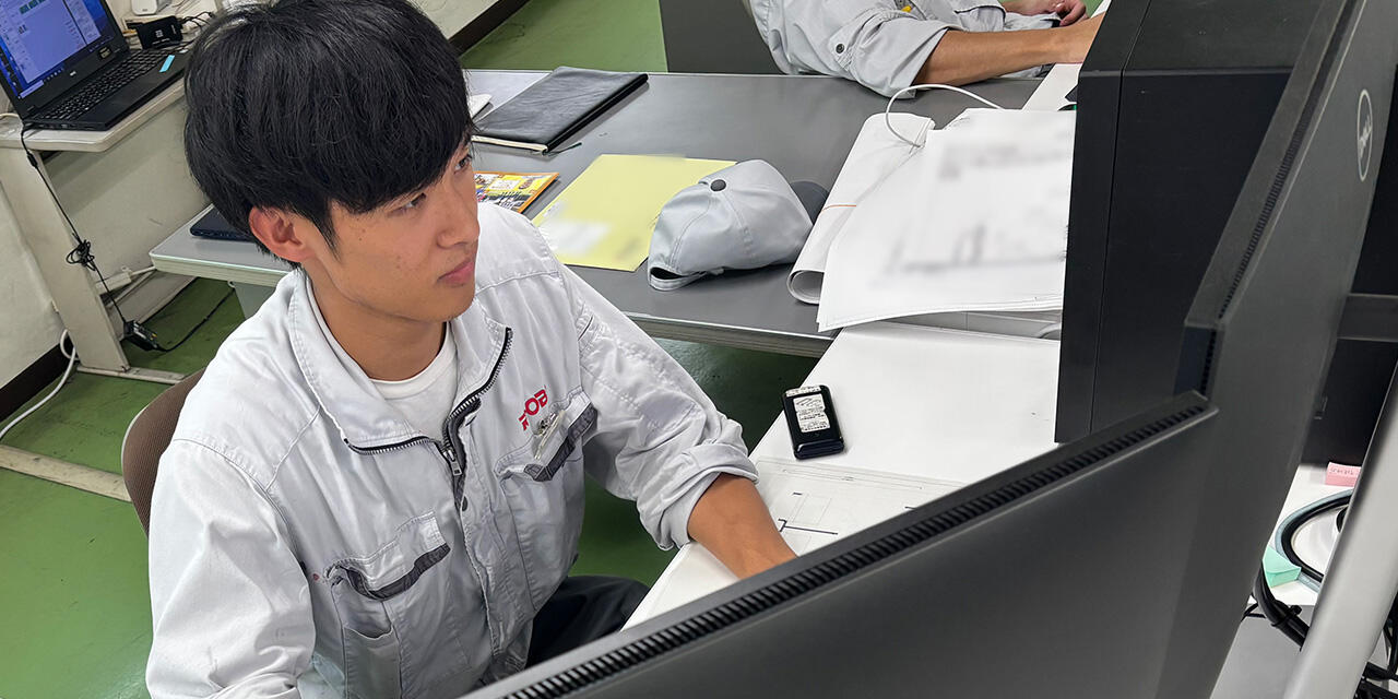 CADを使った設計は未経験でしたが、新しいことに挑戦するなかで日々の成長を実感しています。特にゼロから構想を練る試削り治具の設計は、難しいながらも大きなやりがいがあります。行き詰まったときは先輩たちからアドバイスをもらい、チーム一丸となって課題を解決する過程にも、仕事の面白さを感じています。