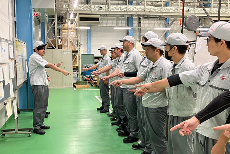 - 安全に作業を行うため、準備体操をしっかり行います。重量物を扱う作業が多いので、安全第一を常に意識しています。また、効率的に行えるよう作業手順や工具の使い方などをしっかり確認してから作業に移ります。