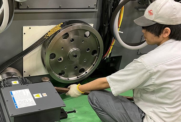 - ユニット連結作業や、駆動装置とポンプ配管の組立作業を行います。「組み間違いが無いか」「ボルトの緩みが無いか」など、検査記録表の項目をチェックしながら確実に作業を進めます。